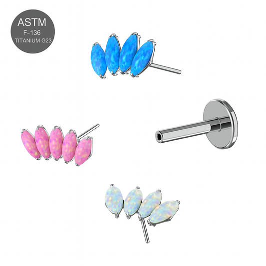 G23 Titanium Opal Marquise Jewelled Thread-less Push-Fit Top With Flatback Stud