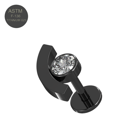 G23 Titanium Round CZ Jewelled Thread-less Push-Fit With Flatback Stud