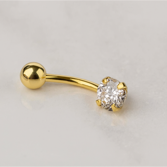 14K Gold Round CZ Jewelled Internally Threaded Belly Ring