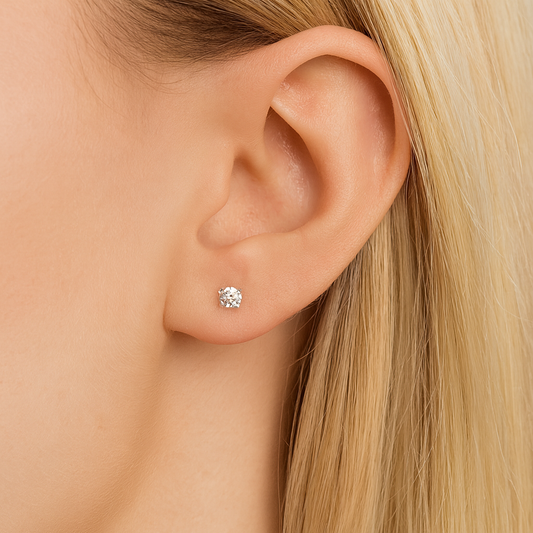 14K Gold Round Cubic Zirconia Top Internally Threaded Stud