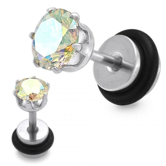 316L Surgical Steel Aurora Borealis Colour CZ Jewelled Fake Ear Plug with Drum