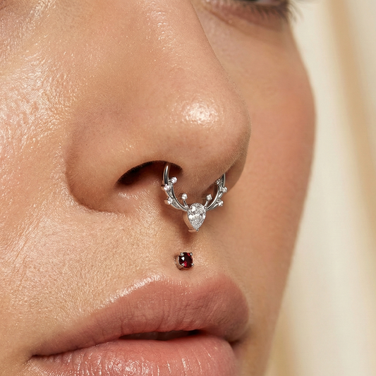 316L Surgical Steel CZ Jewelled Antler Hinged Segment Clicker Ring