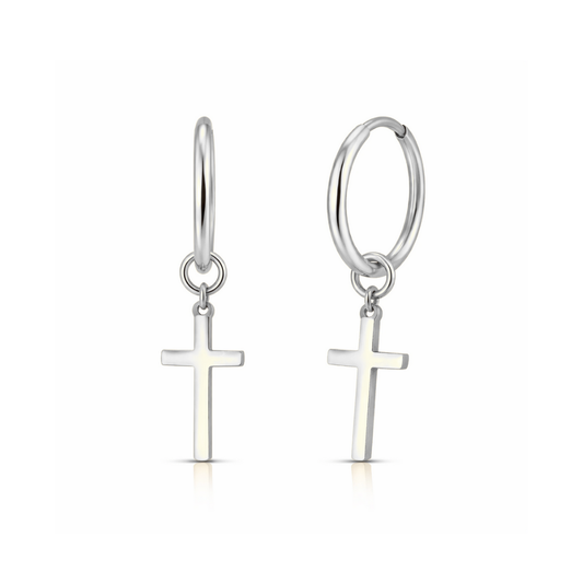 316L Surgical Steel CZ Jewelled Cross Hinged Drop Earring