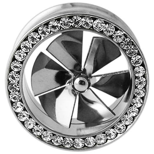 316L Surgical Steel Jewelled Fan Internally Threaded Tunnel