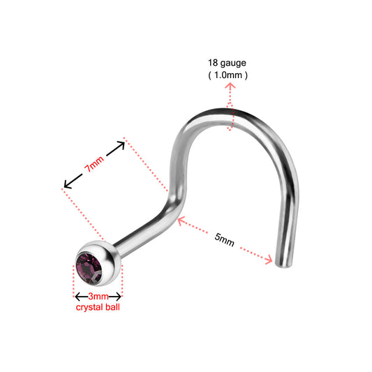 316L Surgical Steel Single Rhinestone Jewelled Screw Type Nose Pin