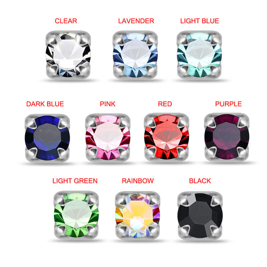 925 Sterling Silver 10pcs CZ Jewelled Square Design Nose Bone Box