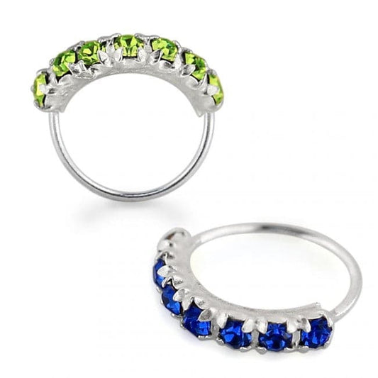 925 Sterling Silver 7 CZ's Paved Seamless Continuous Nose Hoop Ring