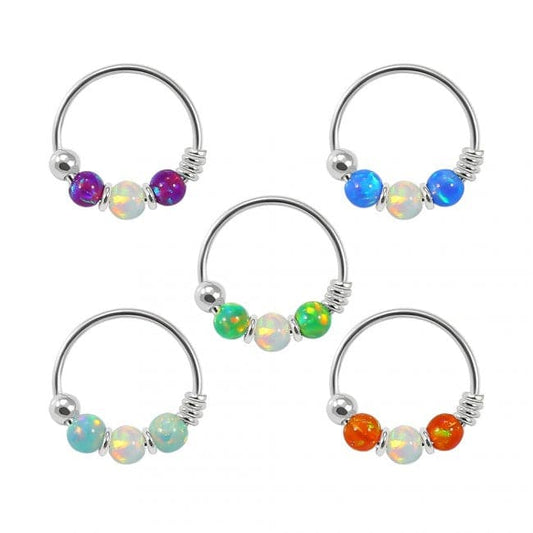 925 Sterling Silver AB Opal Bead in Center Nose Hoop Ring