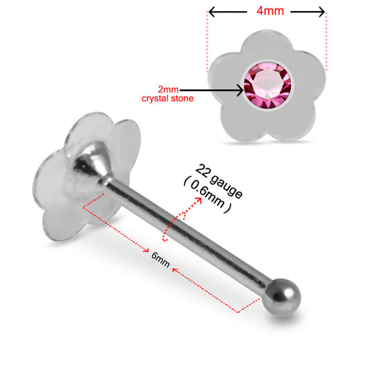 925 Sterling Silver 5pcs Jewelled Flower Nose Bone Box
