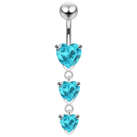 925 Sterling Silver Charm Trio Heart Jewelled Moving Navel Ring