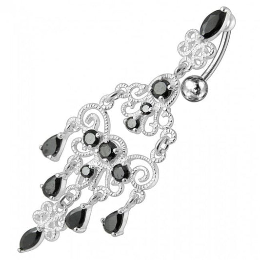 925 Sterling silver Chandelier Dangling Curved Belly Ring