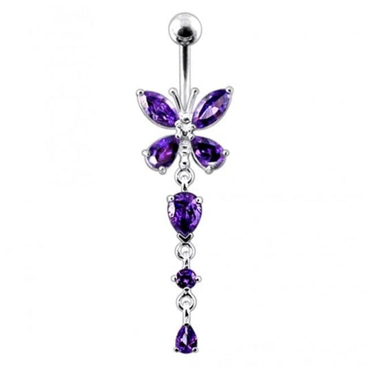 925 Sterling Silver Butterfly Dangling Belly Ring
