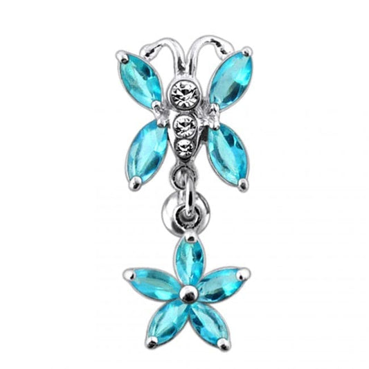 925 Sterling Silver Butterfly Flower Dangling Belly Ring