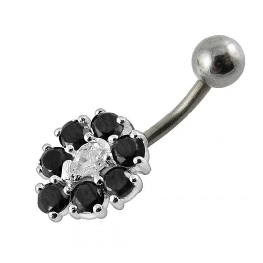 925 Sterling Silver Fancy Jewelled Flower With SS Bar Navel Ring