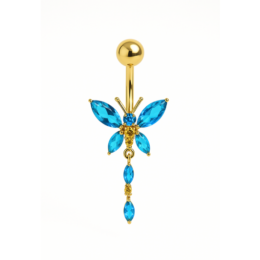 925 Sterling Silver Gold Plated Butterfly Dangling Belly Ring