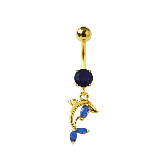 925 Sterling Silver Gold Plated Dolphin Belly Ring