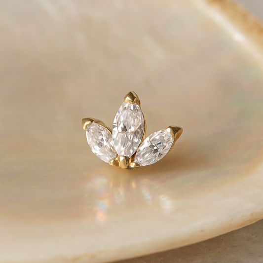 14K Gold Internal Thread Marquise CZ Crown Top