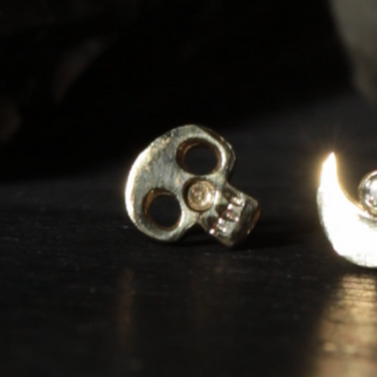 14K Gold Internal Thread Plain Skull Top With Internal Thread Base Labret