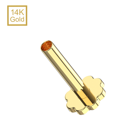 14K Gold Internal Thread Flower Back Labret Bar