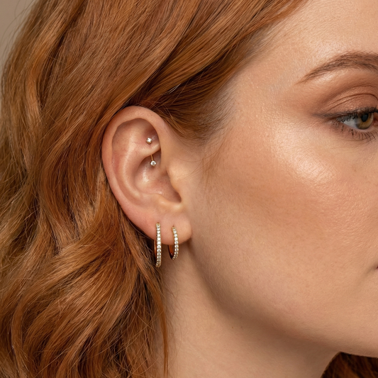 14K Gold Internal Thread CZ Jeweled Laser Cut Button Top