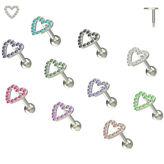 925 Sterling Silver Jewelled Heart Cartilage Ear Stud