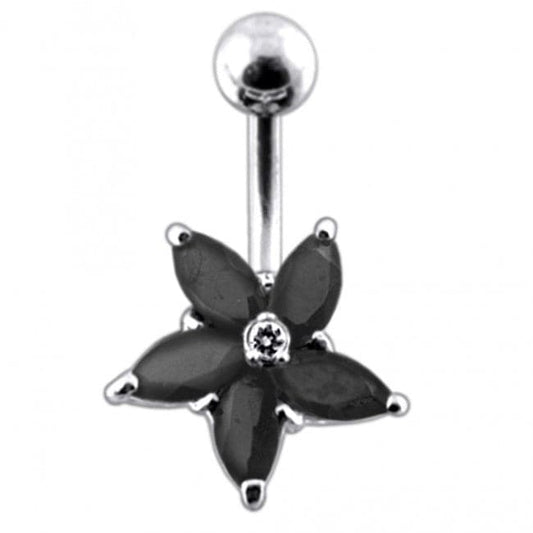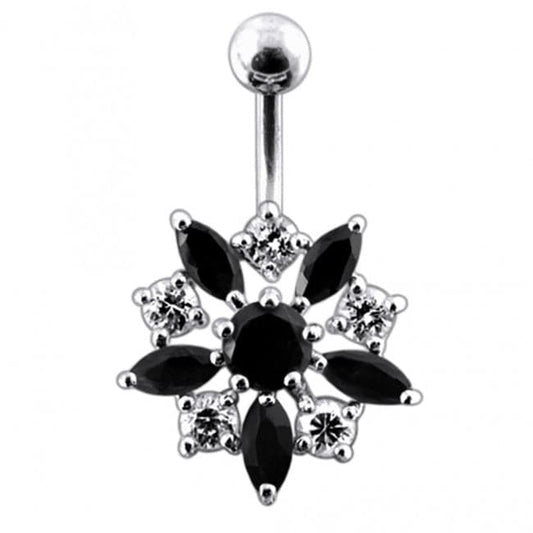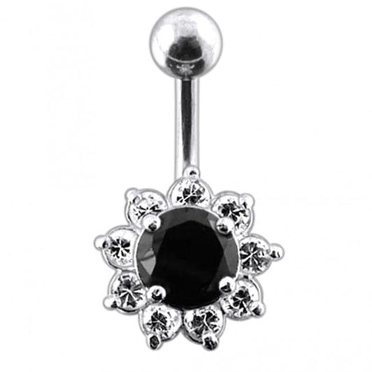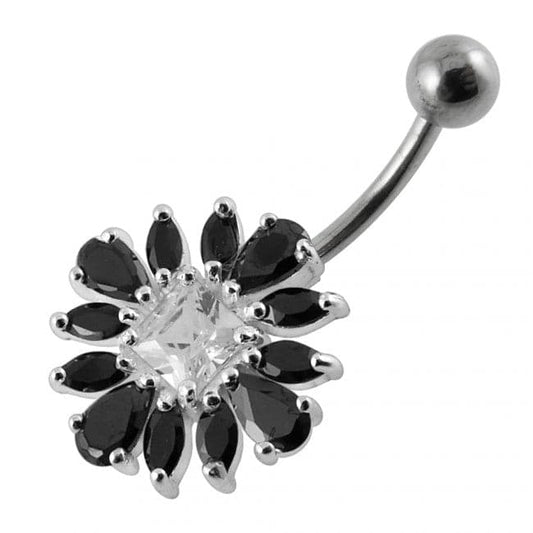 925 Sterling Silver Jewelled Flower With SS Curved Bar Belly Ring