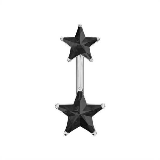 925 Sterling Silver Jewelled Star Studded Spinal Belly Button Ring