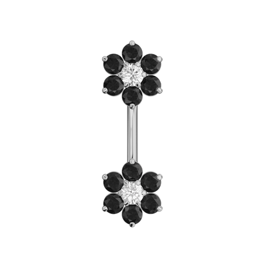 925 Sterling Silver Jewelled Twin Flowers Spinal Belly Button Ring