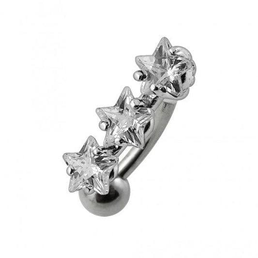 925 Sterling Silver Jewelled Triple Star Non-Moving Belly Ring