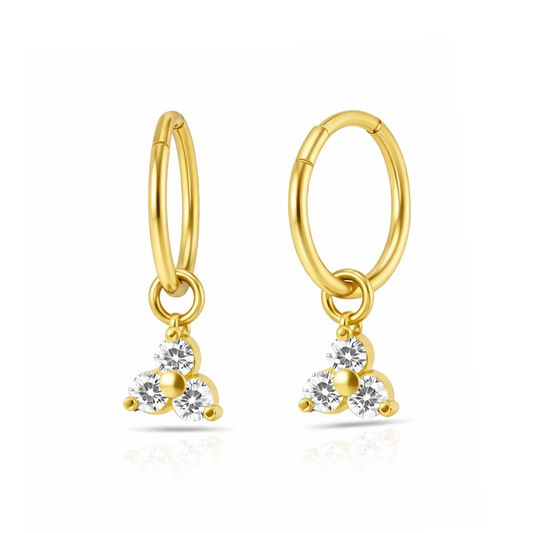 925 Sterling Silver Tri CZ Jewelled Drop Hinged Clicker Earrings