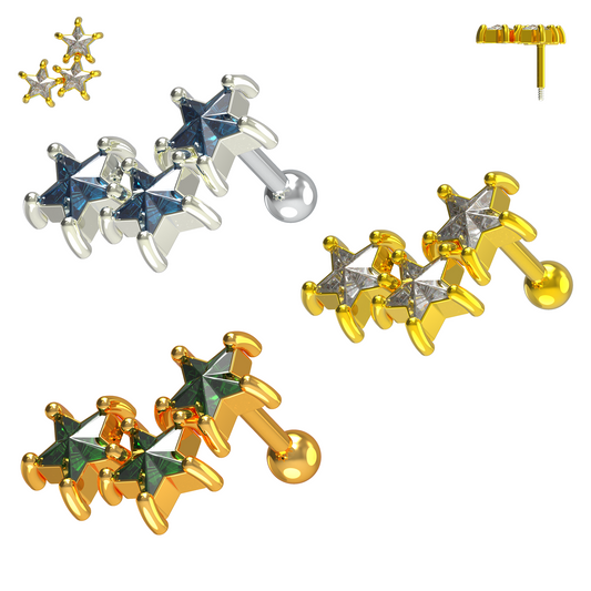 925 Sterling Silver Tri-Star Cartilage Ear Stud