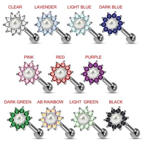 925 Sterling Silver Sunflower & Pearl Cartilage Ear Stud