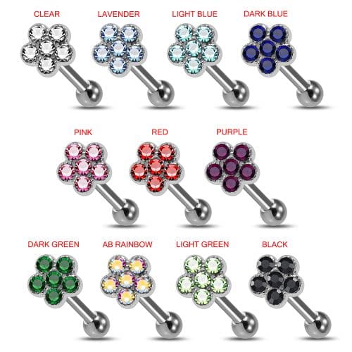 925 Sterling Silver Tiny Flower CZ Jewelled Cartilage Ear Stud