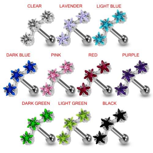 925 Sterling Silver Tri-Star Jewelled Cartilage Ear Stud