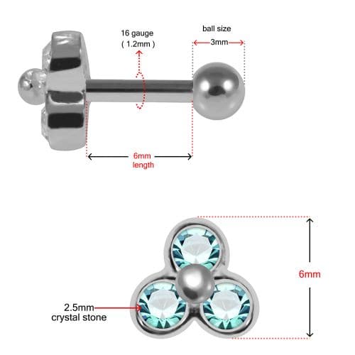 925 Sterling Silver Trinity CZ Jewelled Cartilage Ear Stud