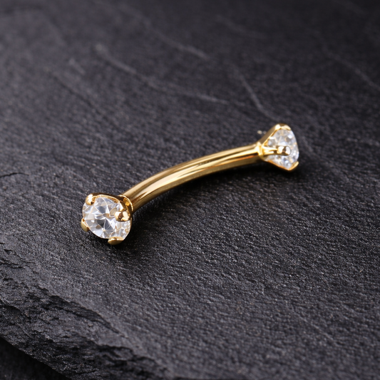 9K Gold Internally Threaded Round CZ Jewelled Curved Bar