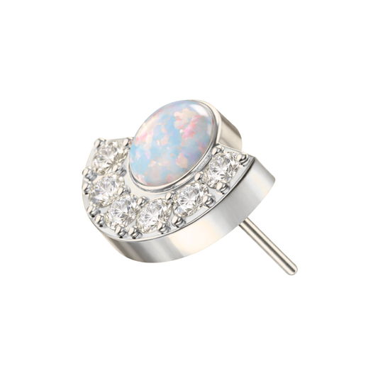 G23 Titanium Crescent Opal & CZ Threadless Flatback Stud