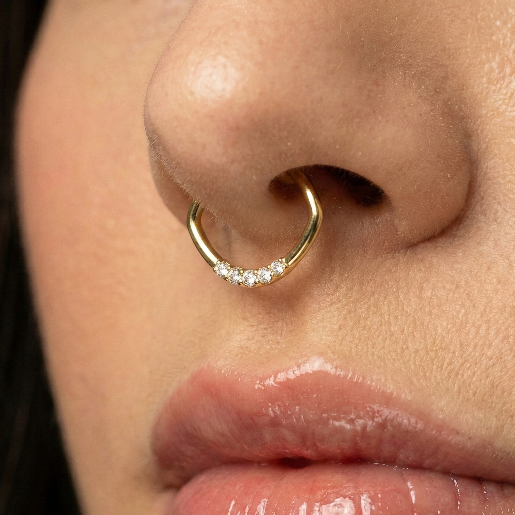 Add a sophisticated touch to your look with this 14K Gold Nose Clicker, featuring five dazzling cubic zirconia stones set in a curved design. The easy-to-use clicker mechanism ensures a secure fit, while the high-quality Gold and sparkling stones offer a luxurious feel. Perfect for those seeking a chic and elegant accessory to enhance their jewellery collection.
