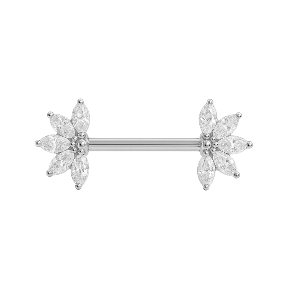 G23 Titanium Marquise CZ Jewelled Fan Threadless Push In Nipple Bar