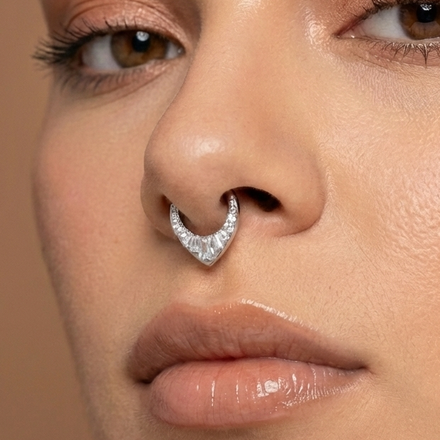 Crafted from premium G23 Titanium, this elegant clicker ring is perfect for septum, daith, helix, and other piercings. Its luxurious teardrop shape features a sparkling mix of round and baguette-cut cubic zirconia for eye-catching brilliance. Lightweight yet incredibly strong, Titanium ensures comfort and long-lasting wear. This hypoallergenic Titanium jewellery piece offers a sophisticated look, ideal for daily use or special occasions. A stylish and safe choice for anyone seeking high-quality body jewellery.